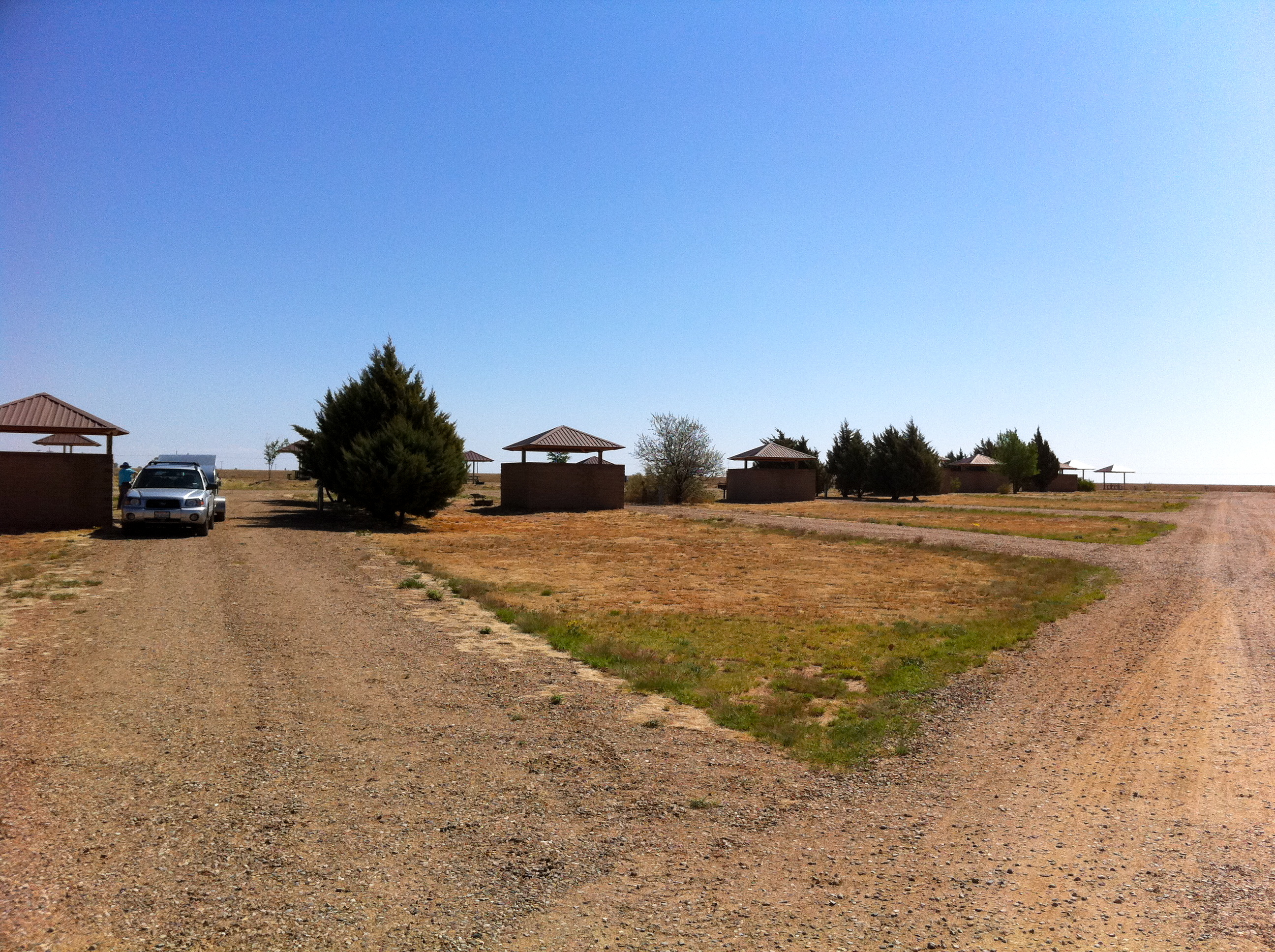 At Tucumcari we turned onto Highway 54 and drove northeast to Logan and onward to Ute Lake State Park. The ranger’s office was closed when we got there, but we found the self check-in kiosk and soon were ensconced in a nice space with a water view. The wind was still blowing strongly, so we picked a spot where we could face the kitchen away from the wind. It wasn’t hard to find an appropriate space because the campground was almost completely empty!
