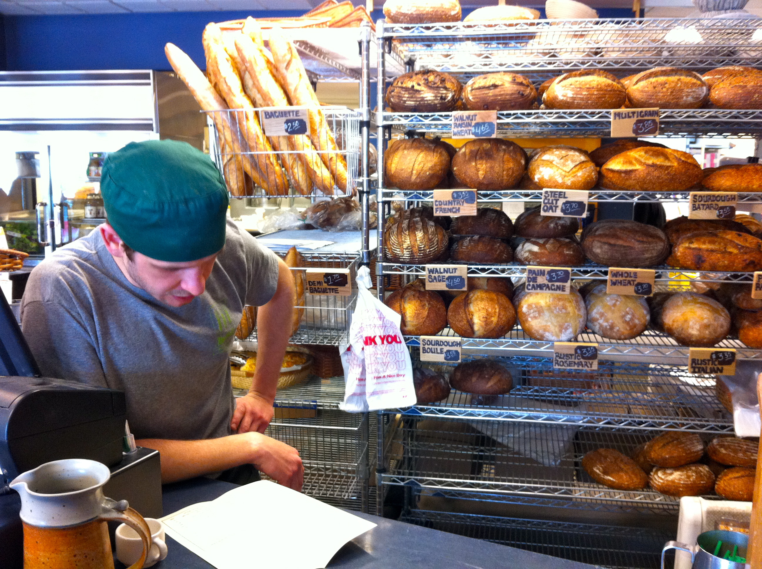 Diana’s friend Charisse had recommended a restaurant in Lawrence — WheatFields — that had good vegetarian food and a bakery, so we stopped by. The place was great, with excellent coffee and a range of interesting meals. We opted for an Asiago cheese scone and a lovely cinnamon roll to go with our coffee. The fresh loaves of bread drew our attention, and we picked up one for us and one for Charisse. If you’re ever in Lawrence, check it out. They also have meals to satisfy any of you carnivores out there. Their Website is: http://www.wheatfieldsbakery.com